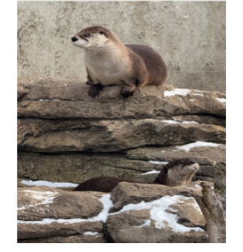 There weren’t many people at the zoo, being a cold winter day, but I had a brisk walk, and got to see some of the cold-weather animals frolicking (lions, sea otters, and indoor rhinoceroses and giraffes, among others). I actually was a bit relieved that my flight home was delayed for an hour, so that I had time to relish the zoo.
