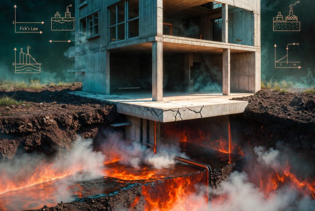 From a building science perspective, the structure itself is a critical control volume. Most vapor intrusion occurs through preferential entry points: cracks in slabs, construction joints, utility penetrations, sump pits, and floor-wall interfaces. Even well-constructed slabs are not vapor barriers in a strict sense; concrete is semi-permeable and can allow diffusion, though at reduced rates compared to open pathways. Engineers often treat the building slab as a boundary condition in modeling, with entry governed by both permeability and pressure differential.